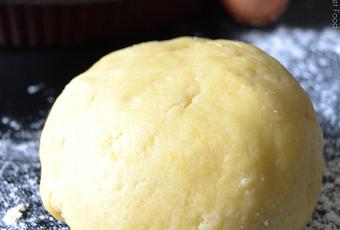 - Mélanger la farine et le beurre ensemble et sabler la pâte entre vos mains . Ajouter le sucre.