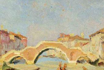 Ce lyrisme atteint son apogée, grâce à l’influence de la lumière vénitienne, intense et chaleureuses dans les vues qui représentent les gondoles à la pescheria, le Rio dei Mendicanti, les églises de Cannaregio, S. Barnaba, S. Marco et le Bacino. Les Bragozzi in laguna, del 1924, montre une analyse minutieuse des détails, au premier plan le reflet des péniches dur l’eau, jusqu’aux arbres coupés qui donnent un fort sentiment de respiration vers le haut.