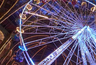 Du 21 décembre au 05 janvier le Grand Palais deviendra une fête foraine aux allures de conte de fées. Sous la nef illuminée de cent couleurs, des auto-tamponneuses, stands de tir à la carabine, voltigeurs et chevaux de bois sauront divertir les plus jeunes. Quand les stands de barbes à papa, beignets, chouchous et pommes d’amour raviront les gourmands ! En tout, près de 50 manèges et attractions seront accessibles de façon illimitée et pour conclure un après-midi déjà bien chargé en émotions, un tour à la grande roue sous le dôme à près de 30m de haut, permettra d’apprécier une vue de Paris sans pareille.