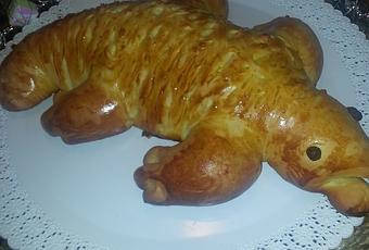 J'ai réalisez ma recette de brioche préféré qui est sur le blog "brioche juive", et je les façonnez de telle à ce que celà ressemble à un crocodile!!!
