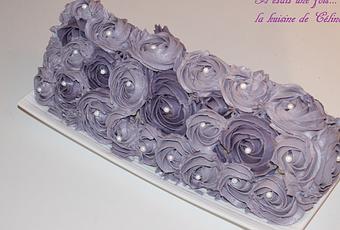 Voici ma première bûche réalisée cette année , elle est composée d'une génoise , d'une crème pâtissière chocolat et d'une ganache chocolat spéculons. La décoration est une crème au beurre colorée .