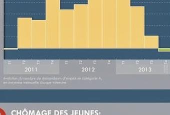 On va rappeler les chiffres ! Mai 1997 : 11,2%. Mai 2002 : 8,2%. Mai 2012 : 10;2%. Maintenant : de l'ordre de 11%. On va rappeler des chiffres plus récents : voir l'infographie. Quand la gauche est arrivée au pouvoir, le nombre de chômeurs augmentait de 15 à 20000 par mois. Il y a eu un bond mécanique ensuite (ben oui, on ne peut pas éternellement tricher sur les chiffres, il fallait bien récupérer les radiés de la campagne)... Le chômage n'augmente plus. Les résultats sont là. La courbe est bien inversée.