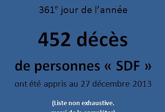 Sur le même sujet, à signaler : cette vidéo qui montre les forces de l’ordre tabasser un "sdf" sans défense… L’indignation est pourtant bien sélective, dans les médias, où l’on préfère parler de la quenelle d’Anelka, faisant ainsi davantage de pub si besoin en était à un individu qui ne le mérite franchement pas… Mais eux, ces morts de la rue, qui s ‘en soucie ?