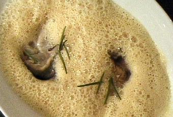 Verser dans les assiettes, placer sur l'émulsion obtenue deux huîtres.