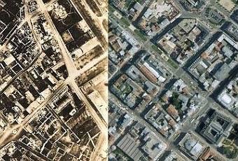 Pour aujourd'hui, voici deux avant-après originaux. En effet, nous prenons de la hauteur avec ces vues aériennes de la ville prises par un aviateur français pendant la première guerre mondiale.