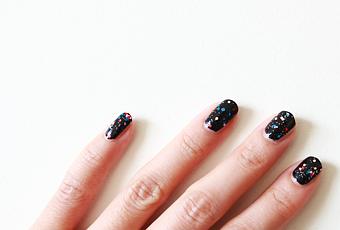 Ma manucure pour le réveillon : Un noir profond parsemé de paillettes.