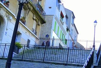 Rue Cortot, on visite le musée de Montmartre, la première maison bourgeoise de la butte avec son jardin et ses vignes, sans négliger d'admirer les jolies maisons en meulière et les immeubles "Années 30" tellement incongrus qu'ils en deviennent beaux. Puis on gagne la place du Tertre au coeur d'une véritable cour de Babel : on y parle anglais, mais aussi russe, espagnol ...Dans les boutiques tout autour, des tableaux peints à la chaîne made in China, mais au milieu, mètre carré par mettre carré, des peintres professionnels qui rééditent sans cesse le même motif ... certains exécrables, d'autres moins ...