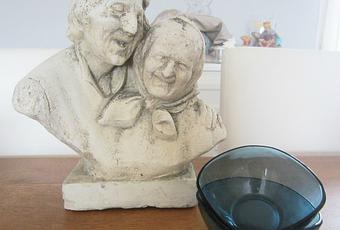 Hier, j'ai trouvé 2 petites coupes VERECO, j'en voulais depuis un moment. Quant à ma maman, elle a craqué sur cette adorable sculpture (bien lourde) à mettre dans son jardin.