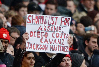 Pour cette raison, ils ont lors du match face à Cardiff City proposé à Arsène Wenger, via une pancarte brandie dans les tribunes, une liste de joueurs qu’ils aimeraient voir débarquer à l’Emirates Stadium. Et le moins que l’on puisse dire, c’est que les supporters du club londoniens ont bon goût : Diego Costa, Jackson Martinez et Edinson Cavani ! rien que ça.