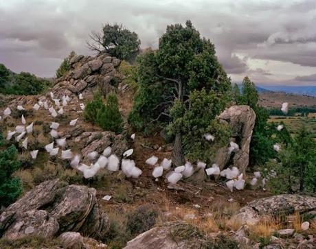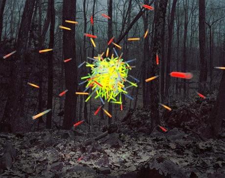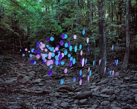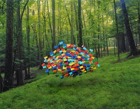 Le photographe américain Thomas Jackson a récemment réalisé une série d'images sur le thème de "l'essaimage" : des gobelets de couleurs, des assiettes ou encore des post-it affluent en essaim dans un décor naturel, pris en photo dans les alentours de la ville new-yorkaise.