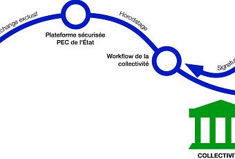 Le traitement des DIA correspond à un processus d’enregistrement sans valeur ajoutée à l’heure où les administrations cherchent à identifier des marges de manoeuvre. Habituellement, une DIA prend la forme d'un formulaire adressé par un notaire en quatre exemplaires à une commune ou un département pour s’assurer de l’absence de préemption : l’envoi par lettre recommandée ou dépôt contre décharge se poursuit par une ressaisie des données et une consultation papier des services pouvant être intéressés. La dématérialisation lisse le processus : le notaire signe la DIA sur le nouveau formulaire Cerfa à partir de la plateforme d'échanges sécurisée du CSN qui la transmet à la plateforme PEC de l’État - elle héberge déjà le portail mon.service-public.fr - pour vérification et horodatée ; puis transmission sécurisée à la collectivité qui traite la demande via un workflow interne et la réponse - accompagnée d’une signature électronique - est retournée au notaire selon le même circuit. La réduction du temps de traitement est mise à profit pour mieux interroger les intervenants sur l’opportunité de la préemption. Reste la question juridique puisqu’à ce jour seule la procédure papier demeure valide en cas d'exercice de ce droit.