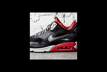 La Nike Air Max 90 SneakerBoot arbore un tout nouveau coloris façon Infrared inversé, avec un upper en néoprène, daim, cuir et mesh noir contrastés par des accents de rouge et de gris avec un swoosh argenté et une semelle intermédiaire blanche.