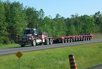 Oversize est le nom utilisé pour les convois exceptionnel en Amérique du Nord. Un multi-ligne, 12 exactement, du célèbre transporteur Mammoet présent aussi au Canada, et une pièce d'un Caterpillar.