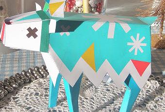 Je suis tombé sur ce Renne en papier à monter soi même. J'ai tout de suite adoré ces couleurs vives et son côté un peu graphique. Si je ne m'en sert pas pour Noël,comme c'est moi qui organise nouvel an cette année, il me fera office de décoration pour mettre sur le buffet ou sur la table.