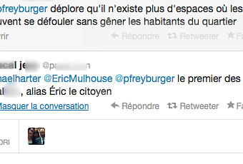 Après la divulgation (en septembre 2013) de mon nom par le directeur com de la campagne pour les élections municipales 2014 de l' ump Jean Rottner , et constatant certainement que cela n'avait pas suffi à me faire taire, c'est sur twitter que mon identité est dévoilée, par un sympathisant (peut être militant?) ump et de Jean Rottner.