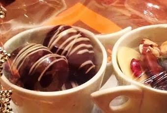 Cadeau de Noël ... de jolies tasses à expresso pour Chéri et moi ... Et pour en profiter, une dégustation de quelques marrons glacés enrobés de chocolats et de mendiants s'est imposée ! Ces tasses nous plaisent beaucoup, leur design est moderne et original.