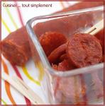 Couper en tranches fines, un chorizo Doux et les faire revenir dans une poêle, environ 2 minutes. Les verser dans un bol et ajouter 1càc de vinaigre de Xérès. Mélanger et les servir aussitôt.