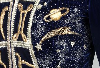 Le vintage Haute-Couture hisse désormais au rang d’objet d’art cette pièce issue de la collection Astrologie, parsemée d’étoiles filantes, planètes et signes du zodiaque et rebrodée par la célèbre Maison Lesage.