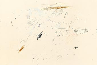 Les papiers de Cy Twombly délivrent les éléments d'une énigme : graffitis, mots, chiffres, signes, paroles fragmentées figées sur le support, ratures. D'une pièce à l'autre, l'opinion varie, les certitudes vacillent. Au point de s'interroger sur le mouvement créé par ces apparitions. Ces signes semblent parfois s'engloutir dans le plan du papier, parfois apparaître à sa surface. Ces dessins-écritures, ou le contraire, sont-ils en état de construction ou de décomposition ?