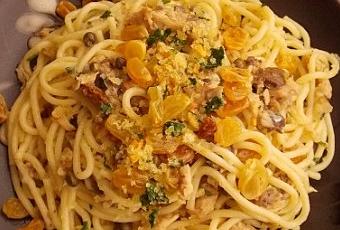 J'ai ajouté des câpres et des raisins secs, mais on peut zapper l'un ou l'autre c'est une question de goût !. La seule chose qu'on ne peut pas retirer ceux sont les sardines. Le tout sera parsemé de chapelure qu'on fait revenir dans un peu de matière grasse mélangé à l'ail et persil.