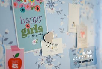 Je l’ai tout de suite vu sur mon réfrigérateur. Ma cuisine est si petite que le côté too much lui va bien, j’ai pu mettre les jolies cartes de Fifi Mandirac, et quelques adresses que j’aime : en grande fan de café il y a Café Coutume dans le 7ème, le restaurant Beaucoup pas loin de chez AnnaKa Bazaar dans le 3ème.