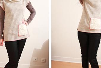 J’ai craqué pour la coupe de ce top, sa joli poche en fausse fourrure et son snood assorti.