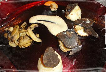 Servir dans des assiettes chaudes avec quelques lamelles de truffe fraiche.