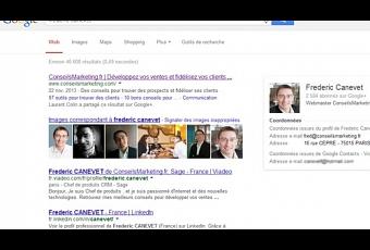 J’ai récemment discuté avec Hervé Bloch qui me disait que ses clients lui parlaient beaucoup de ConseilsMarleting.fr parce que quand on tape son nom dans Google dans les premières pages une vidéo d’une de ses interviews apparaît dans Google.