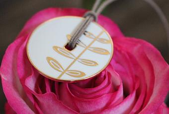 J’ai choisi pour vous le pendentif Tobacco, il s’agit d’une pièce de laiton émaillée et recouverte d’une fine couche d’or. J’ai aimé l’aspect délicat et lumineux de ce pendentif.