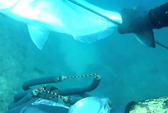 Voici un tir parfait en chasse sous-marine. A première vue, pas très profond ce qui est assez rare avec Pachinsub. En récompense, une magnifique daurade.