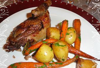 Pendant ce temps, braiser dans 2 cs de graisse de canard les pommes de terre et les carottes pendant 45 min.