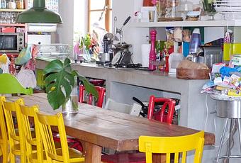 Si vous recherchez le bonheur dans sa plus simple expression, je vous propose de me suivre au coeur de Lyon, pour explorer ce magnifique appartement de 115m² ultra lumineux et sans aucun vis à vis. Le grand séjour de 60m² dessert une belle cuisine ouverte avec son plan de travail en béton simple et efficace, un salon super joyeux avec une jolie cheminée et une bibliothèque, ainsi qu’un bloc central dominant la pièce qui permet une circulation astucieuse et qui sert aussi de bureau. Dans les intérieurs, le plus important, c'est ce que l'on ressent à l'intérieur. Ici, c'est simple, tous ces objets, toutes ces couleurs nous transportent dans un monde où la morosité n'existe pas... Quand je vous dit qu'il en faut peu pour être heureux :-)