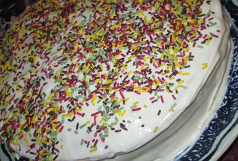 Pour la décoration j'ai utilisé seulement des petites confettis de toutes les couleurs, mais sur beaucoup de blogs j'ai vu que les filles avaient utiliser de la pâte d'amande, je pense que je ferais pareil la prochaine fois, j'ai décidé d'en faire un pour l'anniversaire de Lola.