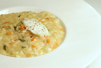 - A la fin de la cuisson du risotto, ajouter le chèvre émietté et bien mélanger.