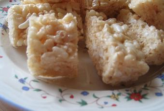 5 à 6 tasses de céréales de type Rice krispies (5 tasses donneront des carrés plus moelleux)