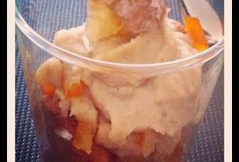 - Déposez 1 cuillère à soupe de cette crème dans 4 verrines.
