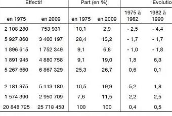 Publié Par Contrepoints, le 9 janvier 2014 dans Travail & emploiDe 1975 à 2009, le nombre d’emplois a fortement progressé en France métropolitaine, passant d’après les recensements de la population de 20,8 millions à 25,7 millions. En ces trente-quatre ans, le monde du travail a été reconfiguré à travers un profond mouvement de tertiarisation.