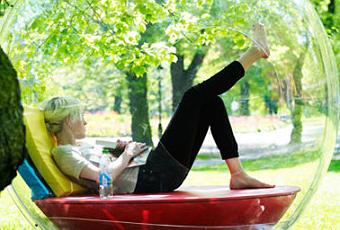 Imaginées par les suédois de StudioTotal pour les amateurs de musique : Audio Orbs, des bulles transparentes équipées d’un système audio composé de 18 haut-parleurs et d’une assise confortable pour vous isoler et écouter votre son préféré ! Un vrai petit cocon à vous!