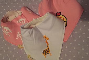 Ces "Bandana" peuvent très bien habiller une tenue de bébé et même si il bave beaucoup, parce qu'il fait ses dents par exemple, ni vu ni connu, un petit bandana !!!