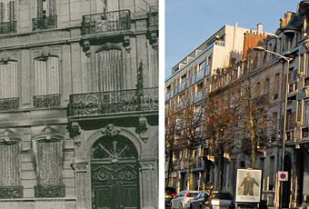 Cet hôtel particulier n'a pas été complètement démoli : seul le toit est écroulé, la deuxième maison, à gauche sur le boulevard, est une belle maison Art-déco, j'espère trouver une CPA où on la verra mieux.