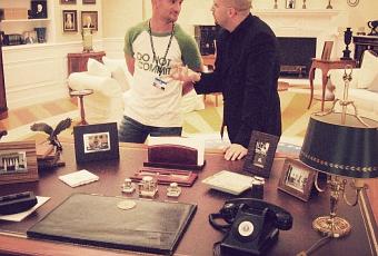 Photo (remember 2004) : Vous êtes nombreux à m’avoir demandé via facebook ou par mail l’origine de cette photo sachant que « bien évidement » nous n’étions pas chez notre cher Barack. C'est en 2004, nous sommes au sein de l’organisation du festival du film américain de Deauville, le festival prépare une soirée pour fêter son 30ième anniversaire. A cette occasion une réplique parfaite du bureau ovale était présente au sein du CID. On a bien rigolé et pris pas mal de photos…