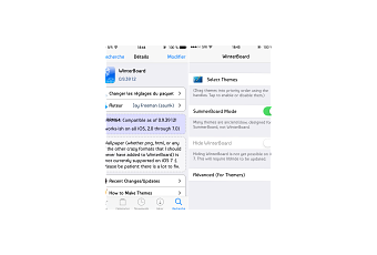 Pour rappel, cette application, disponible uniquement sur les iDevices jailbreakés, permet principalement d’installer des thèmes sur son appareil. L’utilisateur peut ainsi modifier totalement l’apparence et le design d’iOS 7 pour qu’il corresponde à ses envies. Il est également possible d’installer des fonds d’écrans ou autres thèmes pour des tweaks. Toutefois, cela n’est pas encore supporté sous iOS 7.
