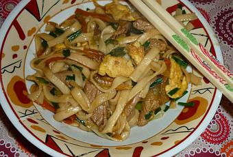 On commence la semaine avec un plat de nouilles sautées aux légumes croquants et porc mariné.