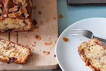 Versez la moitié de la pâte dans un moule à cake. Répartissez la confiture de cerise noire sur la pâte et recouvrez ensuite du restant de pâte à cake. A l'aide d'une fourchette, faites des va et viens dans la pâte pour mélanger un peu la pâte et la confiture.