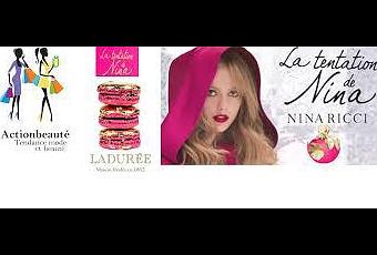 La Tentation de Nina : une fragrance comme un macaron, un macaron comme un parfum. De la rencontre entre les maisons Ladurée et Nina Ricci est née une édition limitée, une flagrance et des macarons, La tentation de Nina.