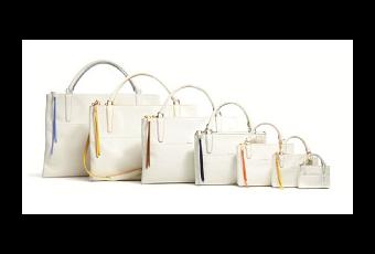 La collection est dans des tons clairs et pastels, ponctués par des embossages d’imprimés animaux sur le cuir et de rayures pour certains modèles.