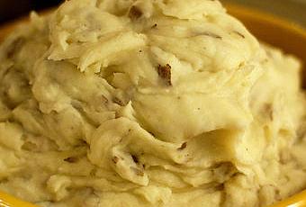 - Ecraser dans un bol les pommes de terre avec la crème sûre et le cream cheese, en ajoutant autant d'eau de cuisson que nécessaire pour avoir la texture souhaitée