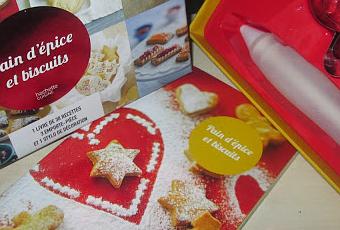 Dans celui-ci il y a :- 3 emporte pièces - 1 stylo de décoration- et un livre avec 30 recettes