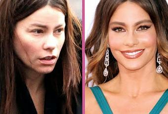 Alors là, j'espère que ça vous en bouche un coin ! Et oui, sur la photo de gauche, c'est bien Sofia Vergara, la super bombasse (toute refaite mais très sexy) ! Alors, une fois de plus, une seule chose à dire : Merci le maquillage !