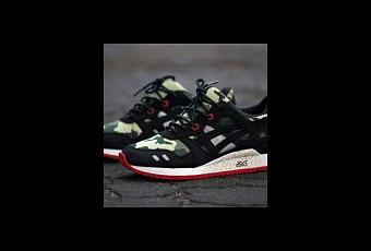 Le shop Californien BAIT s’est associé à Asics pour réinterpréter le modèle phare Asics Gel Lyte 3. Surnommée ‘Basics Model-001 Vanquish’, la paire dispose d’un dessus camouflage contrasté par du daim noir, des accents de rouge et une semelle intermédiaire blanche doté de speckle au milieu.